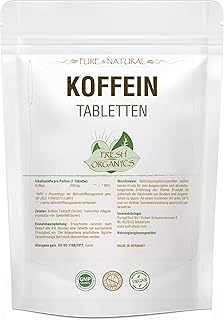 Koffein Tabletten á 200mg 250 Stk | Koffein Anhydrous | 100% wasserfreies Koffein | Coffeinium | Natürlicher Wachmacher | Energie-Level & Stoffwechsel | Premium Qualität (250)