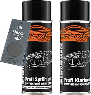TRISTARcolor Autolack Spraydosen Set für Mazda 38P Aluminium Metallic/Liquid Silver Metallic Basislack Klarlack Sprühdose 400ml