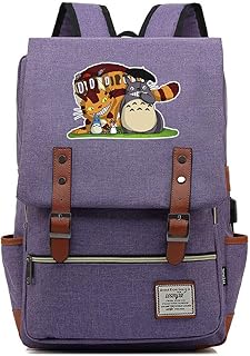 Anime My Neighbor Totoro Backpack Vintage Schulrucksack Studententasche Schulranzen 15,6 Zoll Laptop Rucksack mit USB-Ladeanschluss Purple / 1