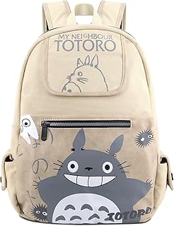 Anime My Neighbor Totoro Laptop Rucksack Gedruckte Schultasche Leinwand Rucksack Kunstleder Tagesrucksack Khaki