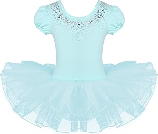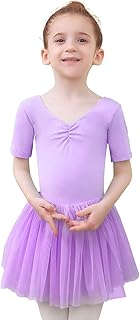 Tancefair Mädchen Ballettkleidung Ballettkleid Kinder Balletttrikot Baumwolle Tanzkleidung Kurzarm Tanzkleid Kostüm mit Dreilagigem Weichem Garn Rock Tütü
