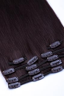 Clip In Extensions Echthaar 7tlg SET - 80cm in #2 Dunkelbraun 7 teiliges Haarteil für komplette Haarverlängerung - Hochwertige dunkelbraune 100% Remy Echthaar Clip-In Extension GlamXtensions