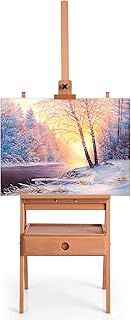 MEEDEN Große Studio H-Frame Staffelei, Buchenholz Künstler Staffelei, Mahagoni Boden Malerei Staffelei Ständer, für Leinwand Kunst bis zu 92cm