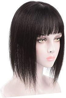 30,5 cm glatte Echthaar-Topper, mit Pony, Clip in Krone, Haarteile für Frauen mit dünner werdendem Haar, natürliches Schwarz