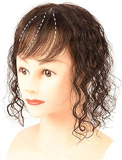 SYANO Frauen Haarteil,Haarteil aus menschlichem Haar, lockig, gewellt, 3D Air Bangs für Frauen mit dünner werdendem oder weißem Haar (Dunkelbraun, 35 cm)
