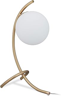 Relaxdays Tischlampe Kugel, geschwungen, Metall & Glas, E27, Lampe Schlafzimmer, Wohnzimmer, Nachttischlampe, gold/weiß, 10034190
