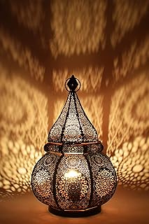 Orientalische kleine Tischlampe Lampe Malhan 38cm Schwarz E27 | Marokkanische Tischlampen klein aus Metall, Lampenschirm Schwarz | Nachttischlampe modern, für Vintage, Retro & Landhaus Stil Design