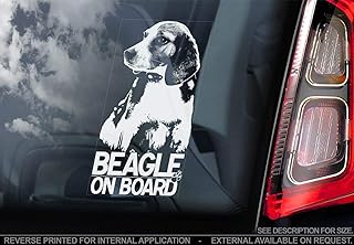 Sticker International Beagle - Autoaufkleber - Hund Schild Fenster, Stoßstange Aufkleber Geschenk - V001 - Weiß/Klar - Externe Außen Aufdruck, 210x100mm