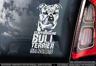 Staffordshire Bullterrier - Autoaufkleber - Hund Schild Fenster, Stoßstange Aufkleber Geschenk - V003 - Weiß/Klar - Interne Rückwärtsgang Aufdruck, 205x100mm