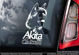 American Akita - Autoaufkleber - Hund Schild Fenster, Stoßstange Aufkleber Geschenk - V004 - Weiß/Klar - Interne Rückwärtsgang Aufdruck, 220x100mm