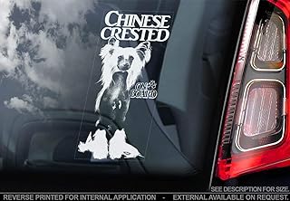 Chinesischer Schopfhund - Autoaufkleber - Hund Schild Fenster, Stoßstange Aufkleber Geschenk - V002 - Weiß/Klar - Interne Rückwärtsgang Aufdruck, 220x100mm