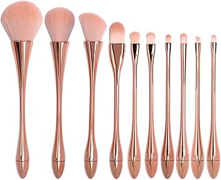 HUNYLondon Make-up-Pinsel-Set für Grundierung, Concealer, Rouge, Lidschatten, Kosmetik, mit goldfarbenem konischem Griff, 10-teilig