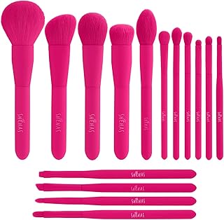 Make-up-Pinselset,15 Stücke Make-up-Pinsel in Profi-Qualität, Make-up-Pinsel aus hochwertigem synthetischem Pinselhaar für Foundation, Puder, Rouge, Highlighter, Concealer Kosmetikpinsel-Set, Hot Pink
