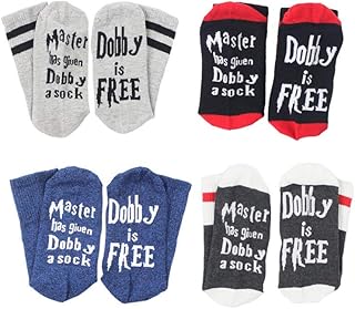 4 Pairs Unisex Novelty Socks Funny Saying Dobby is Free Knitted Words Crew Socks for Womens Mens
