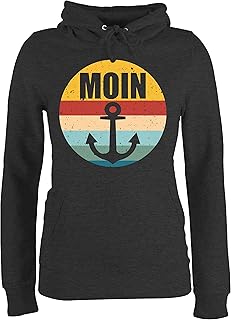 Sprüche Statement mit Spruch - Moin mit Anker Retro - Damen Hoodie und Kapuzenpullover für Frauen