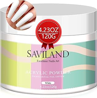Saviland White Acrylpulver - 4,23 Unzen Acrylnagelpulver Professionelles Polymer mit großer Kapazität für Acrylnagelverlängerung Keine Nagellampe erforderlich