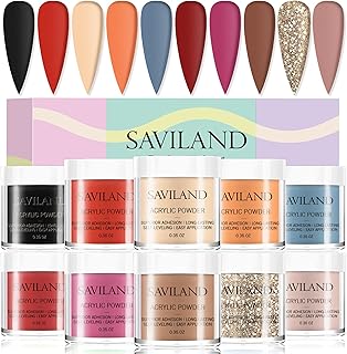 Saviland Acryl Nagelset - 10 Farben Glitzer Acrylpulver Für Nägel Sommer Herbstkollektion Professionelles Buntes Acryl Polymer Pulver Für Nagelverlängerung Acryl Nagelset Starterset Komplett