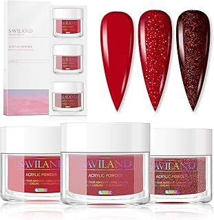 Acrylpulver für Nägel, Saviland Nagelpulver Set Acryl Nagelset 3 Farben Farbig Kit Glitzer professionelles Pulversystem für Nagelverlängerung und Dekoration zu Hause Salon (Rot)
