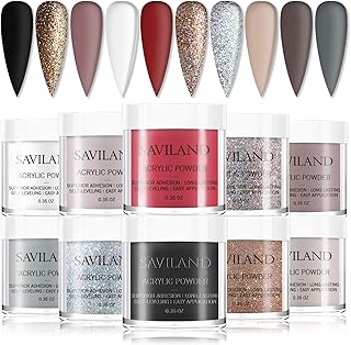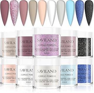 Saviland Acryl Pulver Set Glitzer Acryl Nagel Pulver Set 10 Farben Acryl Nagel Profi Polymer Nagelverlängerung Prom Queen Series